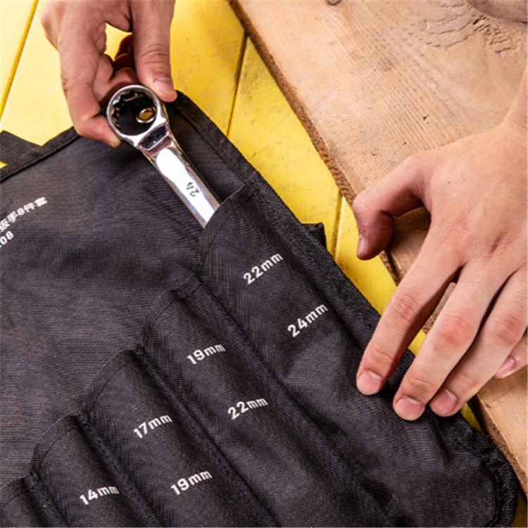得力 鏡面雙梅花扳手布包采用6x450針織數(shù),內(nèi)層上膠,韌性更強(qiáng),金屬掛扣,轍口處雙層縫紉,強(qiáng)度更高。