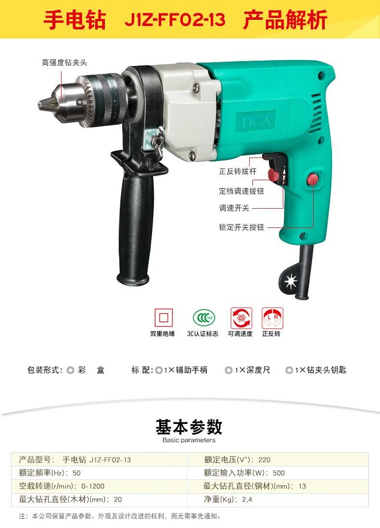 東成DCA手電鉆J1Z-FF02-13電動工具調速正反轉重型電鉆多功能
