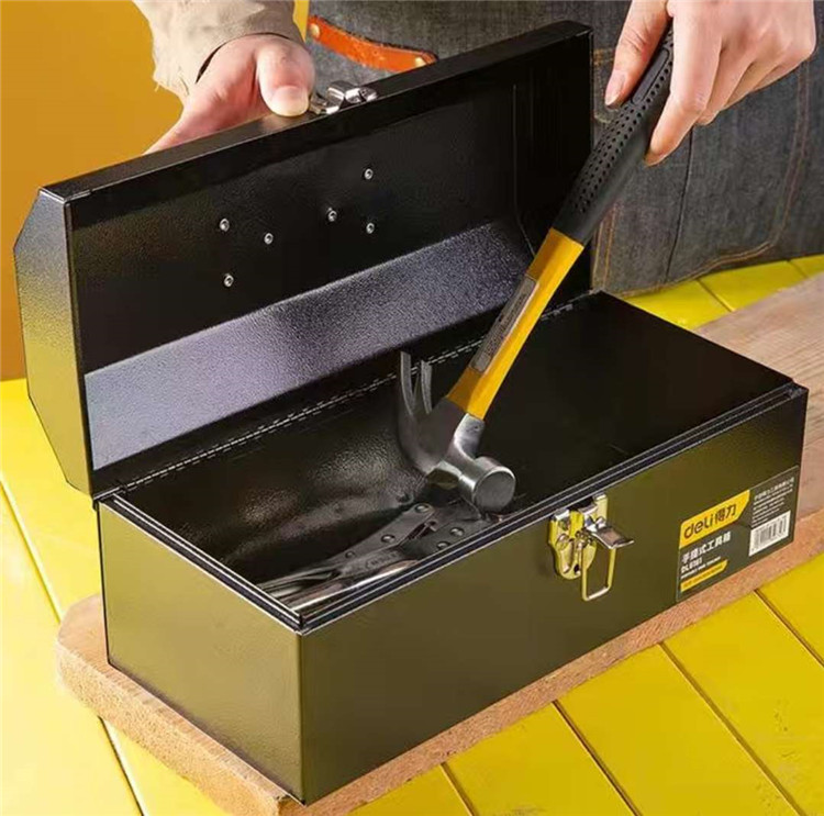 得力(deli)加厚多功能鐵皮工具箱多層鐵制工具柜子折疊手提收納箱收納盒