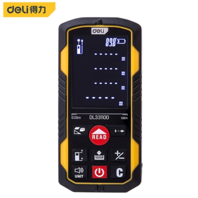 得力紅外線測(cè)距儀50組儲(chǔ)數(shù)功能,查閱方便。
