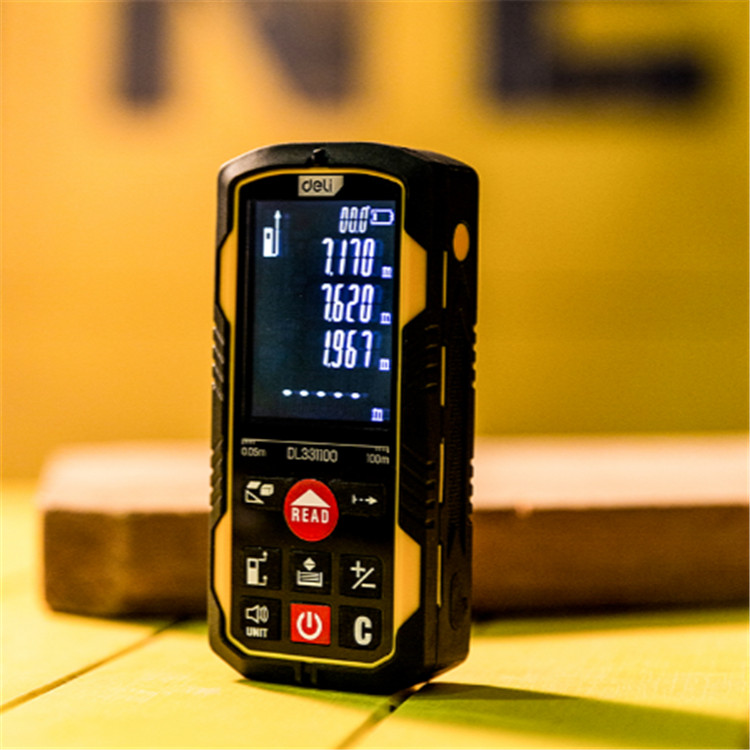 得力紅外線測(cè)距儀手持大屏鋰電激光測(cè)距儀充電高精度電子尺量房?jī)x
