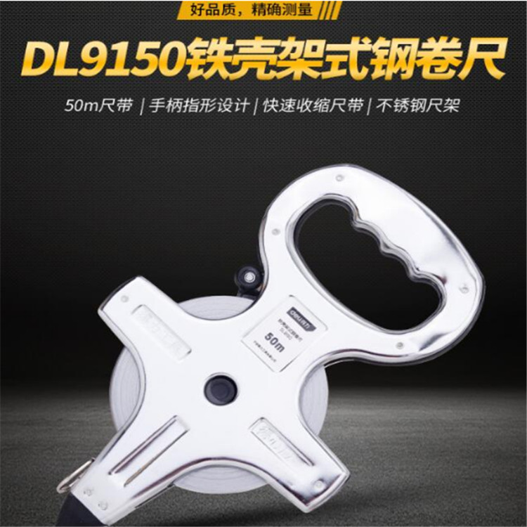 得力鐵殼架式鋼卷尺50m×12.5mm高精度鋼架尺架式鋼卷尺大卷尺長(zhǎng)鋼卷