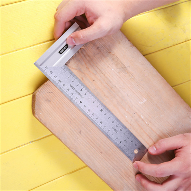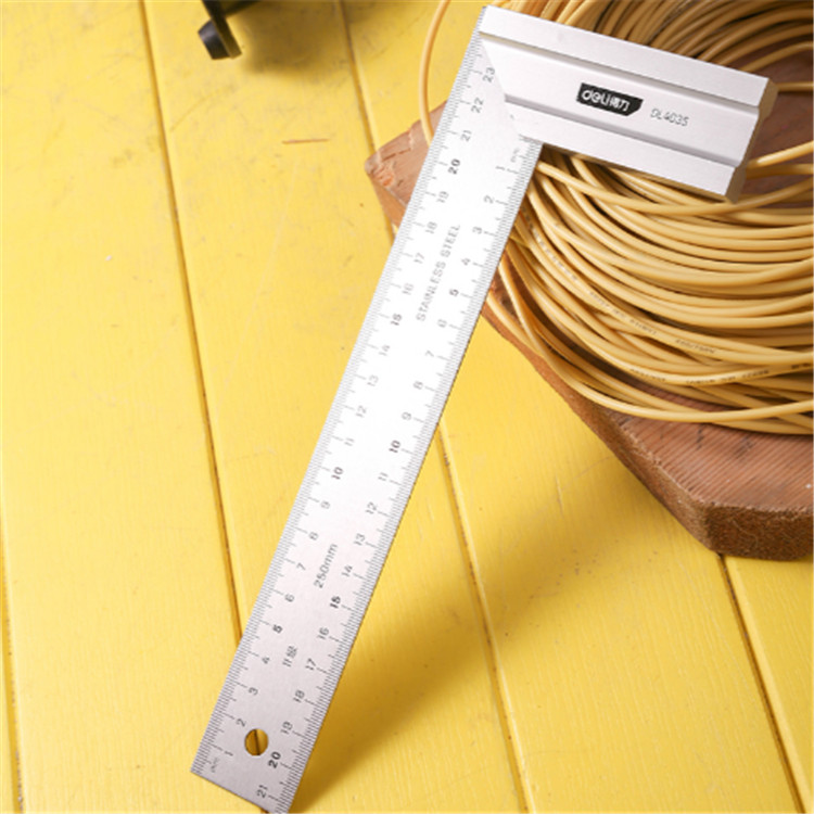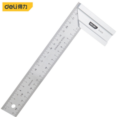得力鋼角尺250mm尺身與底座連接緊固,測量精準(zhǔn)。