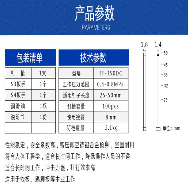 鋼釘木工工具 FF-T50DC氣動直釘槍
