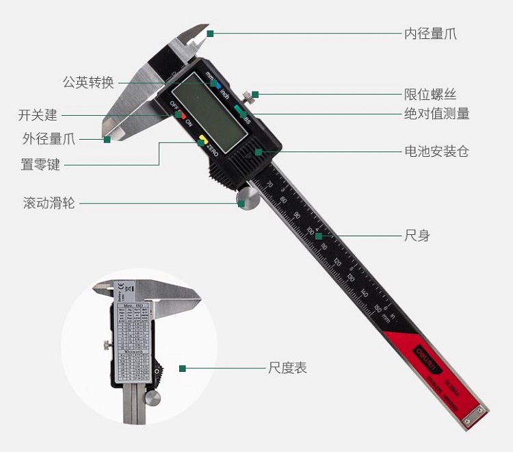 游標(biāo)卡尺有圓滑的金屬滑輪,輕松拉到讀數(shù)
