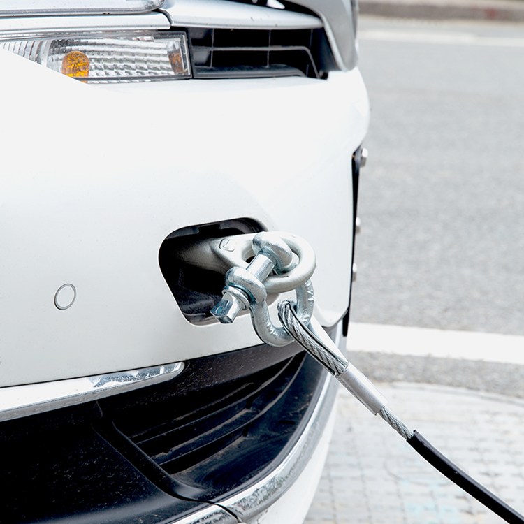汽車牽引繩配備套環(huán)保護(hù)鋼絲繩,防止過(guò)度彎曲和磨損;