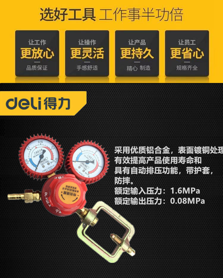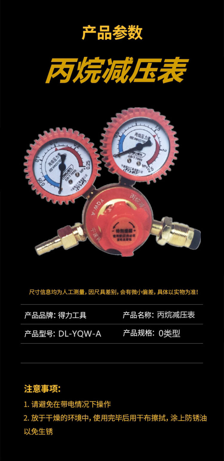 得力工具丙烷減壓表DL-YQW-A 焊割系列 減壓閥 壓力表