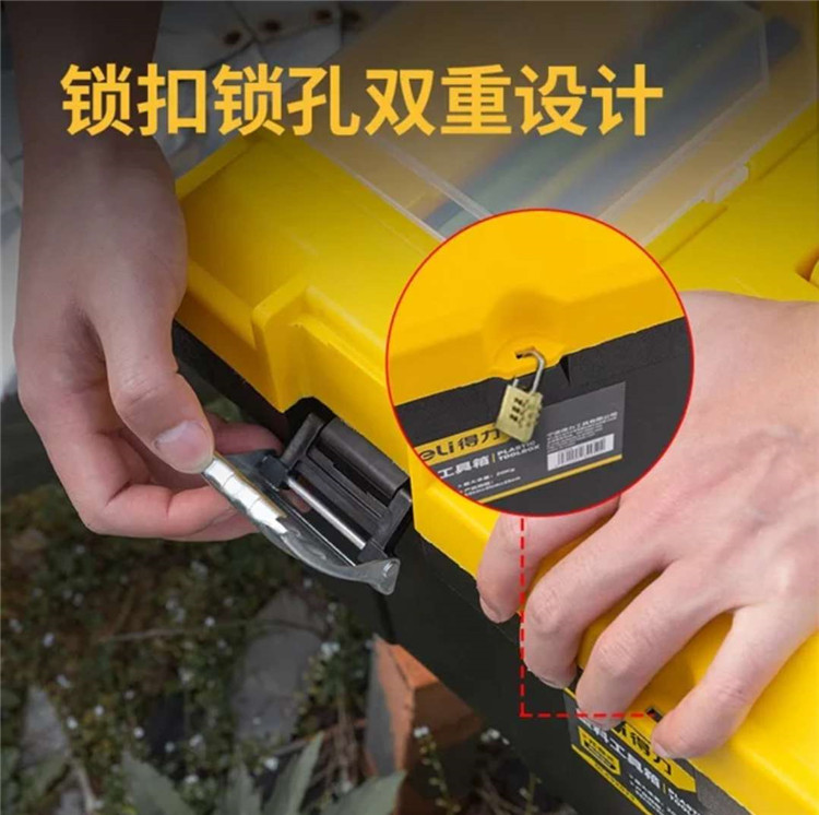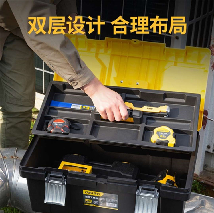 得力(deli)工具箱手提式家用電工箱多功能維修車載加強加厚PP塑料五金收納盒