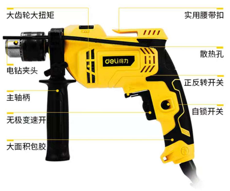 得力(deli)工具電鉆家用沖擊鉆電動(dòng)工具多功能螺絲刀手電轉(zhuǎn)套裝DL6011