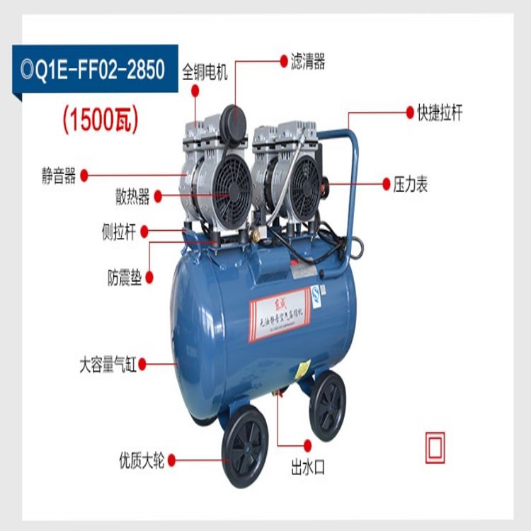 東成無油靜音空壓機Q1E-FF02-2850強勁電機 壽命長泵頭采用鑄鋁機殼,
