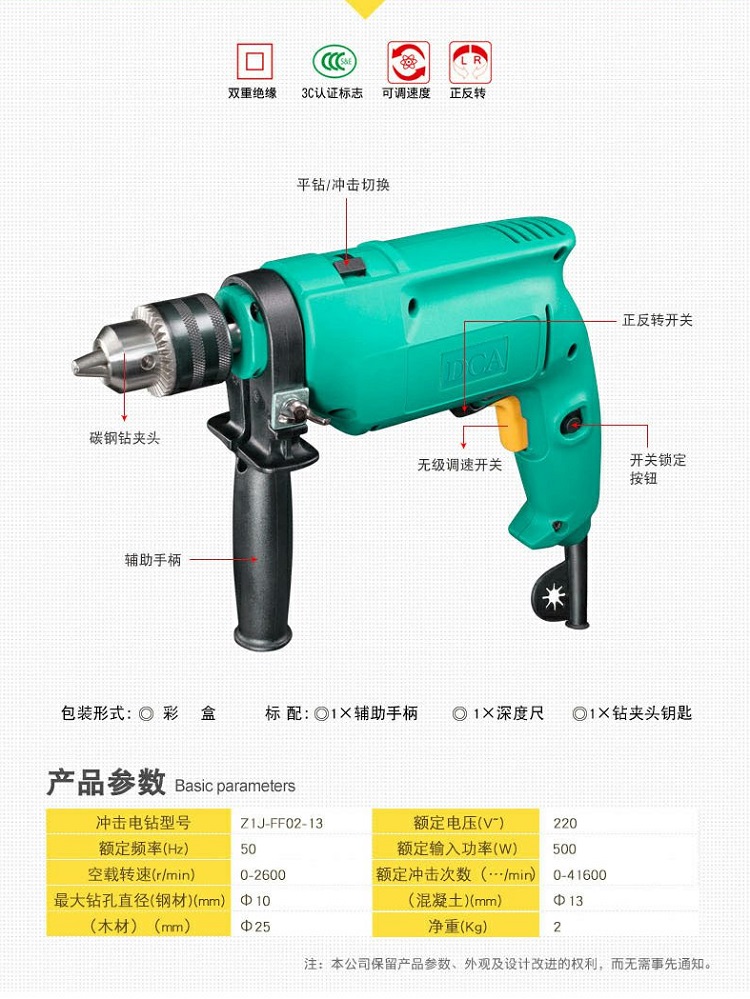 東成DCA沖擊鉆電鉆Z1J-FF02-13家用多功能手槍鉆小電錘電動(dòng)工具