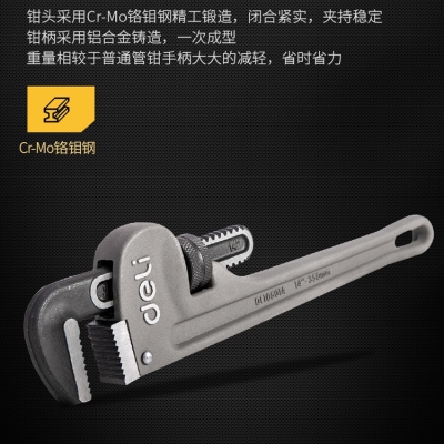 得力超輕鋁合金管子鉗子工業(yè)級水管鉗家用大號水管扳手活動管子鉗