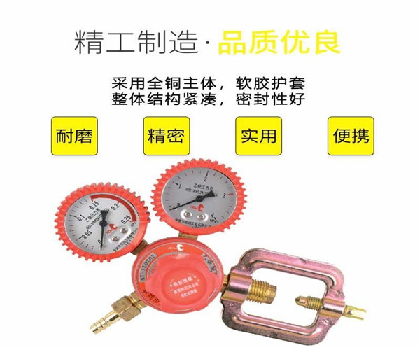 宏遠全銅乙炔減壓表整體結(jié)構(gòu)緊湊,密封性好
