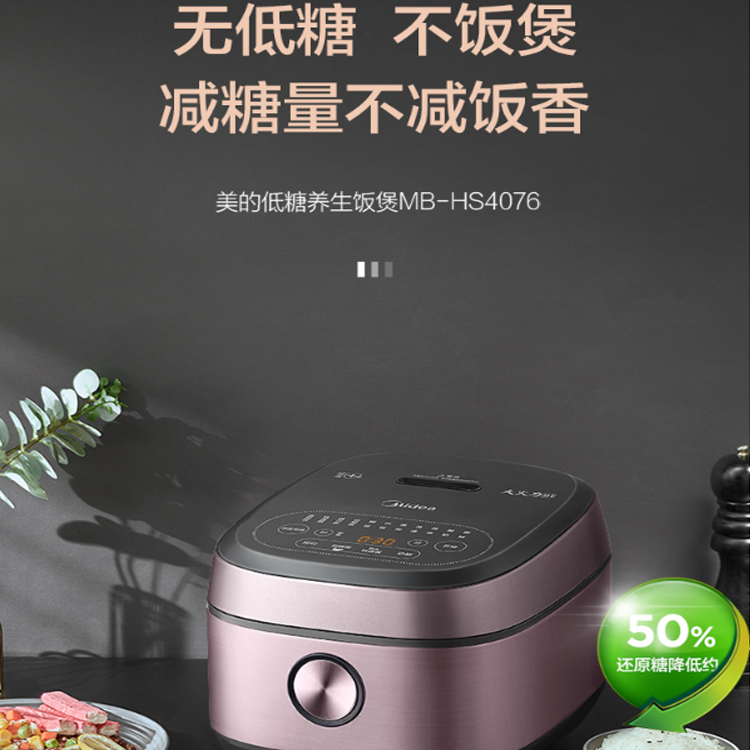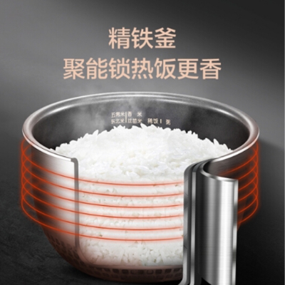 美的智能電飯煲立體IH大火沸煮,劇烈翻滾析出淀粉,做出好吃的低糖米飯。
