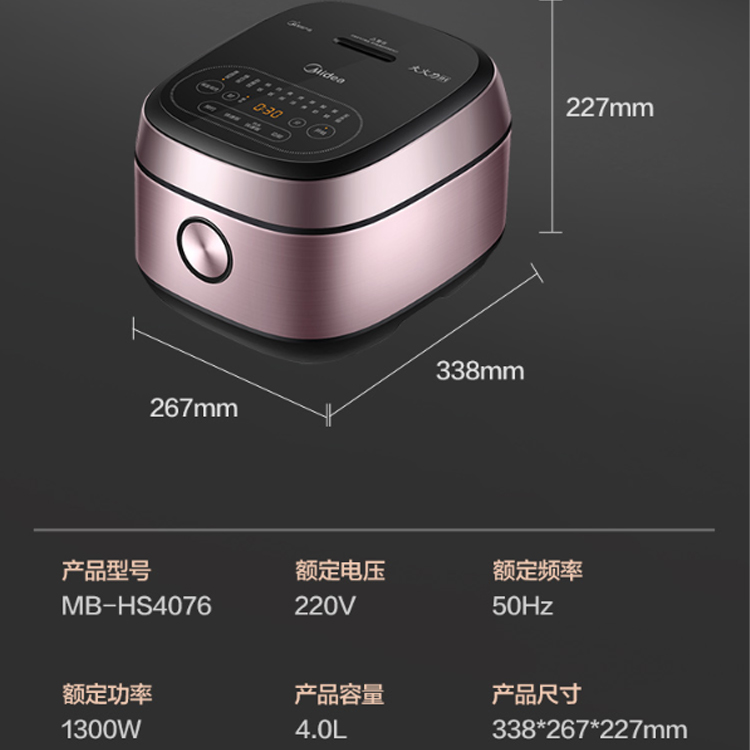 美的(Midea)電飯煲電飯鍋4L大容量IH電磁加熱智能24小時預約觸摸操控一鍵