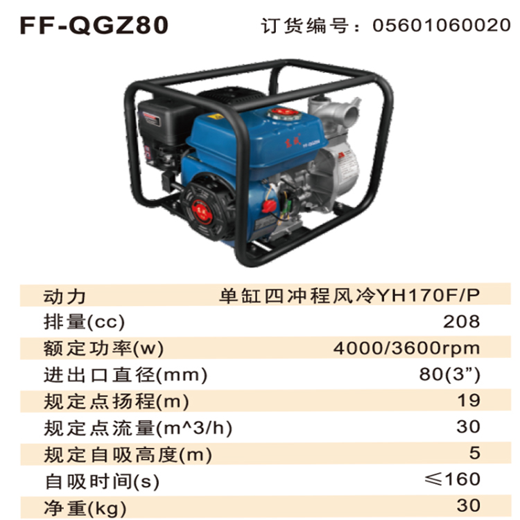 東成汽油機(jī)水泵FF-QGZ80是一種離心泵,由水泵和支架組成,成本低、