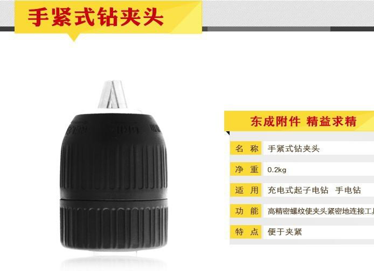 東成電動(dòng)工具附件鉆夾頭10-13mm自鎖手緊式快速夾頭高精密螺紋,便于加緊。