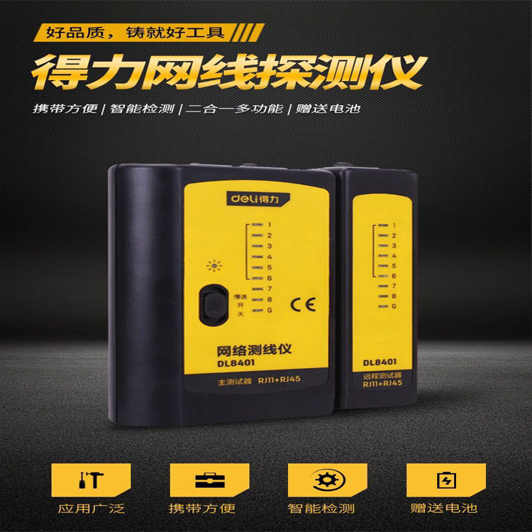 得力多功能網(wǎng)線測試儀電話線測線儀網(wǎng)絡(luò)信號(hào)通斷檢測器工具