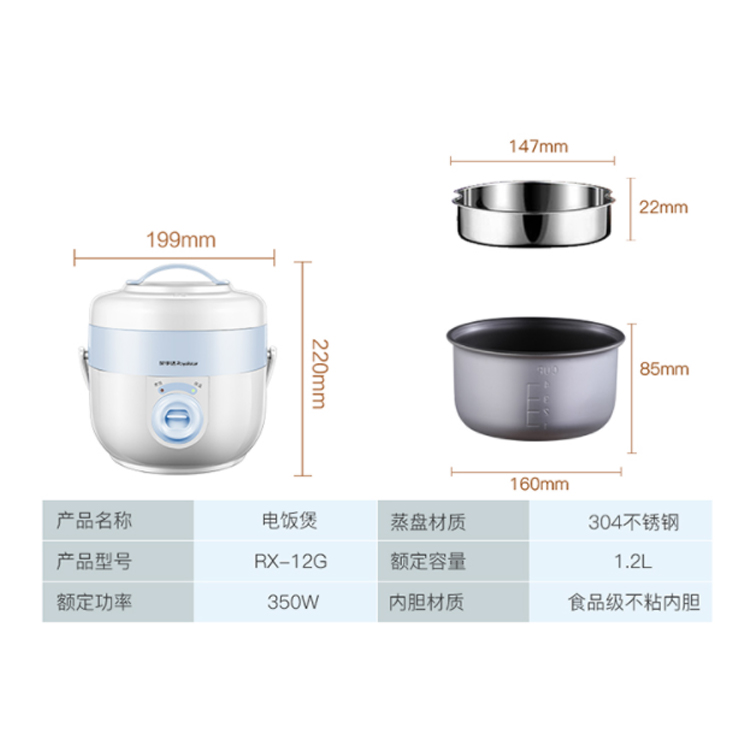 榮事達(dá)(Royalstar)迷你電飯煲小電飯鍋1.2L家用宿舍學(xué)生廚房小電器 RX-12G
