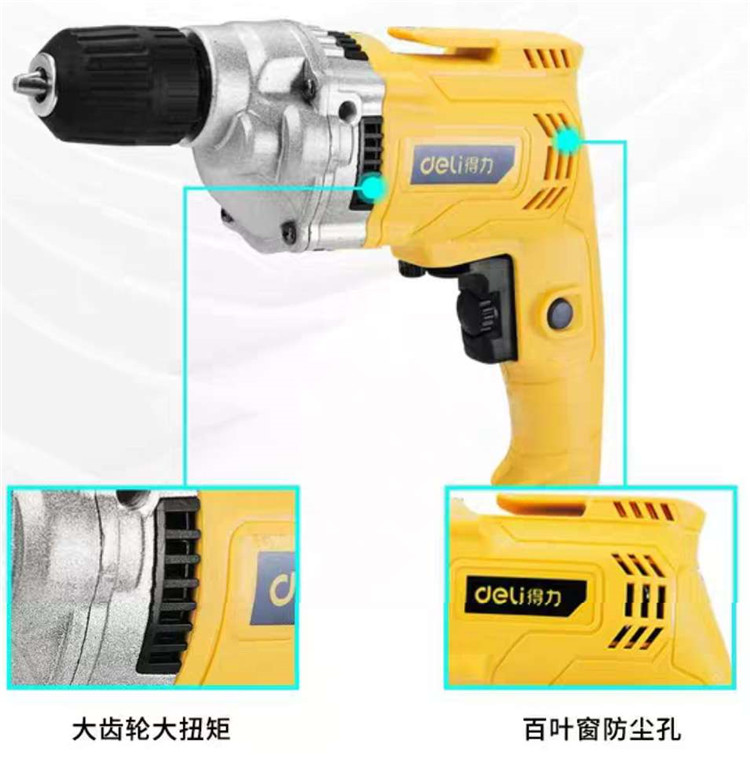 得力220V插電式手鉆小手槍鉆電鉆多功能家用電動螺絲刀電轉(zhuǎn)DL6283DL6282