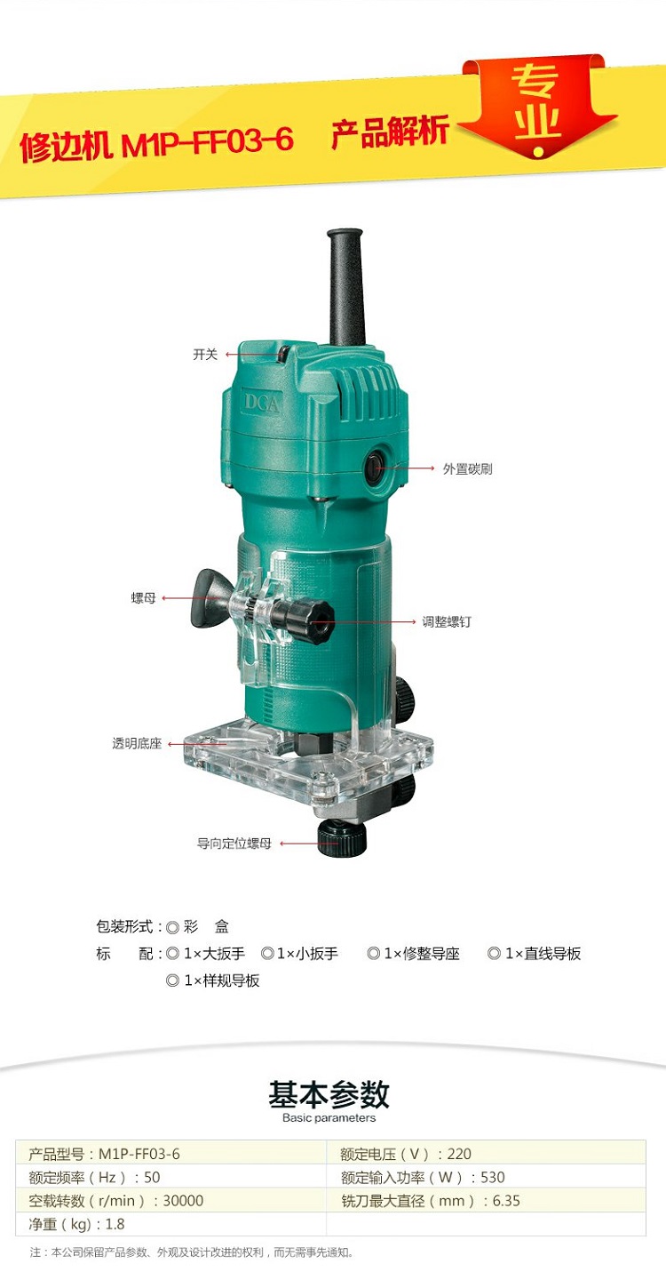 東成DCA修邊機(jī)M1P-FF03-6多功能木工開(kāi)槽機(jī)diy雕刻機(jī)電動(dòng)工具530W