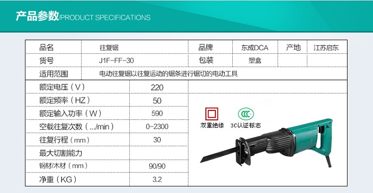 東成DCA馬刀鋸J1F-FF-30電動工具往復(fù)鋸電線電纜家用木工手提