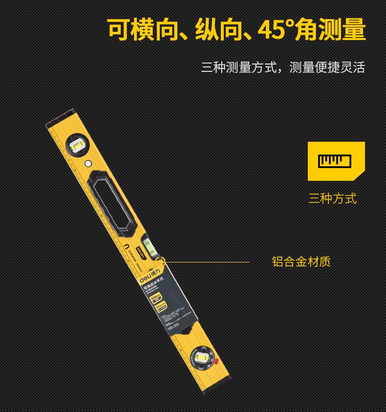 得力水平尺600/800/1000mm強(qiáng)磁可調(diào)式鋁合金水平尺橫向縱向45°測(cè)量
