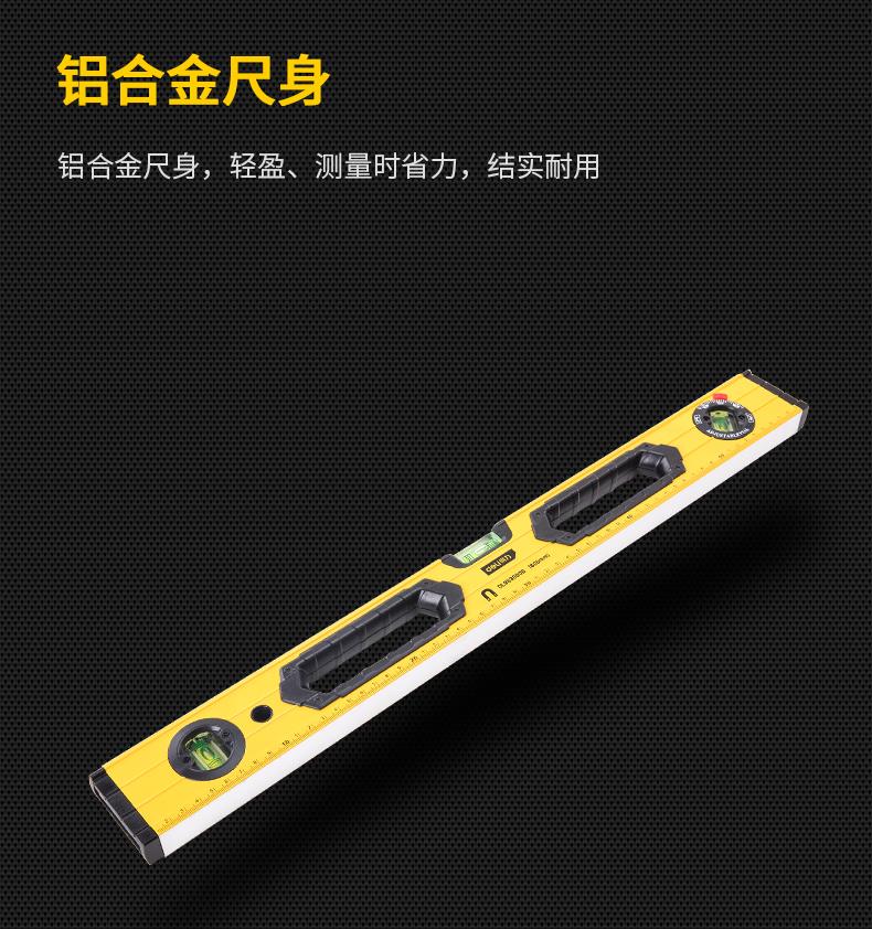 水平尺鋁合金尺身,輕盈、測(cè)量時(shí)省力,結(jié)實(shí)耐用