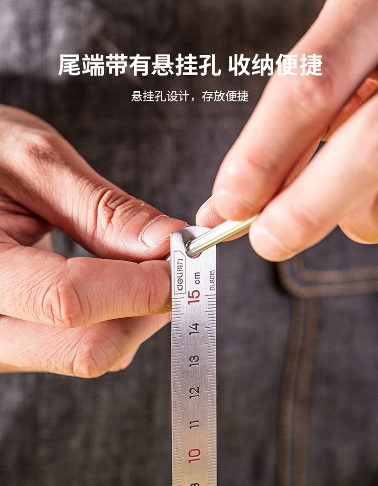不銹鋼直尺尾端帶有懸掛孔,存放便捷