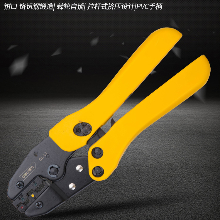 得力冷壓鉗多功能棘輪壓接鉗精密預(yù)絕緣裸端子電工夾線壓線鉗工具