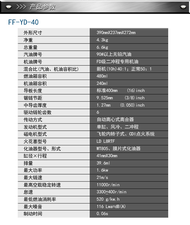 東成油鋸FF-YD-40伐木鋸切冰鋸大功率園林工具基本參數(shù)