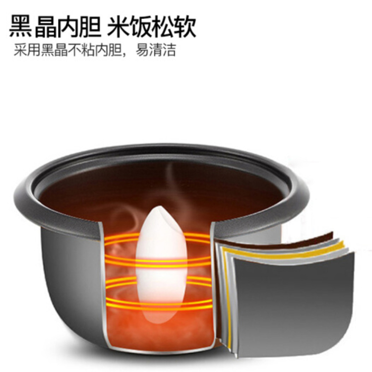 5升容量,加厚黑晶不粘內(nèi)膽,附帶蒸籠,機(jī)械式操作簡單實(shí)用