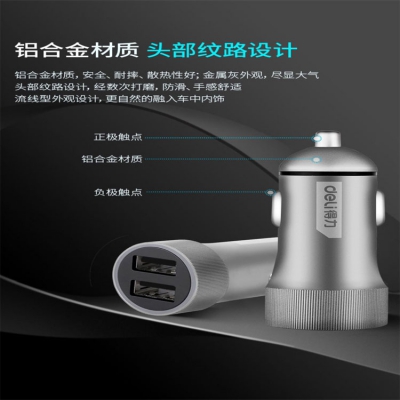 得力工具車載充電器汽車車充一拖二點(diǎn)煙器插頭usb車用多功能快充