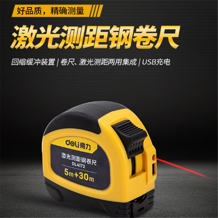 得力激光測距鋼卷尺 雙用卷尺5米鋼卷尺30米測距儀