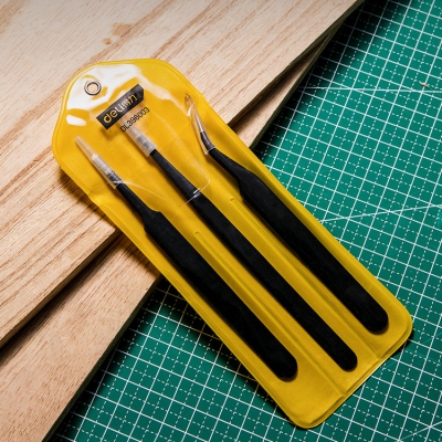 得力工具不銹鋼鑷子彎頭細(xì)尖頭防靜電小鑷夾小夾子維修工具套裝