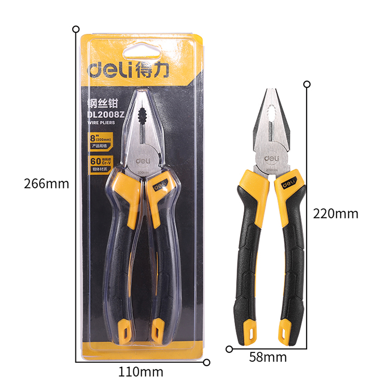得力專業(yè)級鋼絲鉗DL2008Z老虎鉗鋼絲鉗,