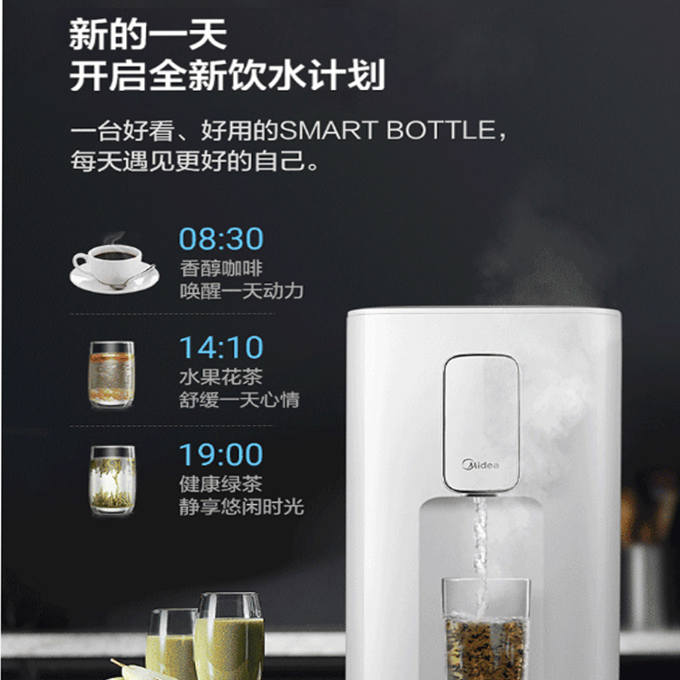 美的即熱速熱飲水機(jī)體積小,通電即用,隨處可放。