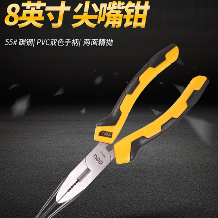 得力工具 8寸家用尖嘴鉗DL0102尖口鉗子電工