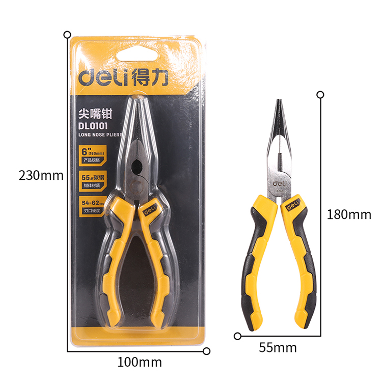 得力(deli) 膠柄尖嘴鉗DL010155號高碳鋼6寸,