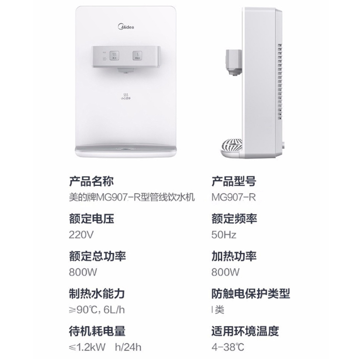 美的 Midea 壁掛式溫熱兩用飲水機 溫熱一體管線機 MG907-R