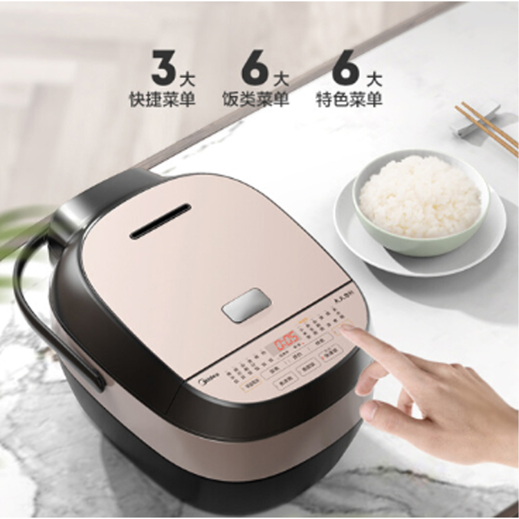 美的4L智能預(yù)約電飯煲大火包鍋設(shè)計,受熱更均勻,米飯粒粒松軟飽滿。