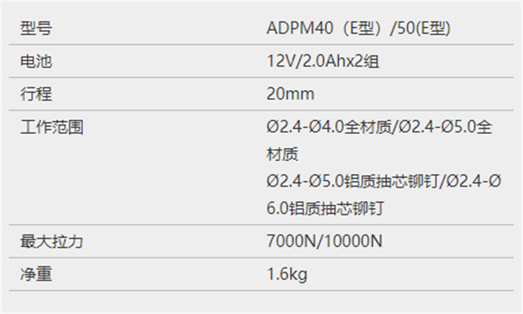 東成充電式抽芯鉚釘槍ADPM40(E型)/50(E型)電動鉚接拉鉚