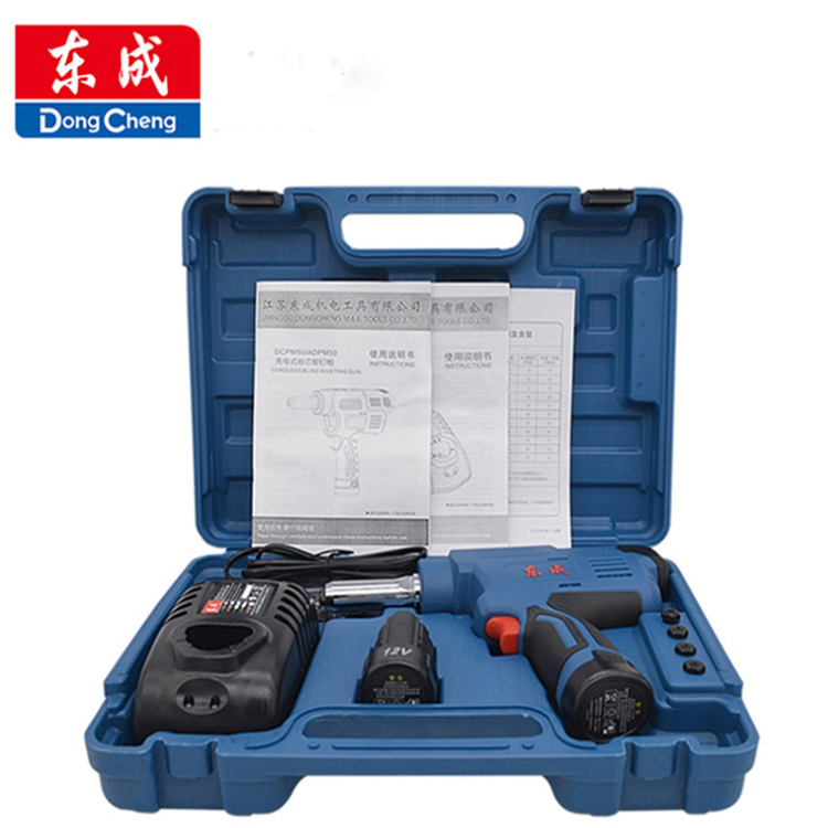 東成充電式抽芯鉚釘槍外包裝及說明書