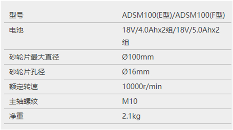 東成充電式角向磨光機(jī)基本參數(shù)圖