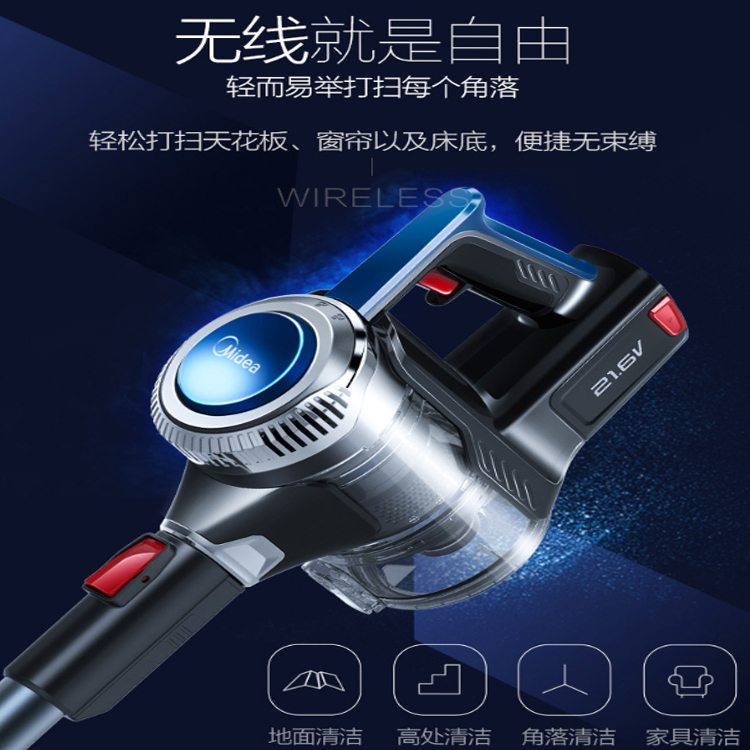 美的手持式家用無(wú)線吸塵器輕松打掃,便捷無(wú)束縛。