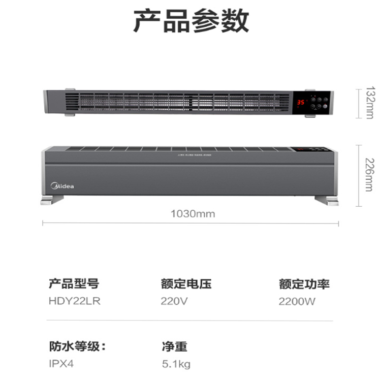 美的(Midea)取暖器/電暖器/電暖氣片家用 智能京魚座 遙控防水踢腳線暖器