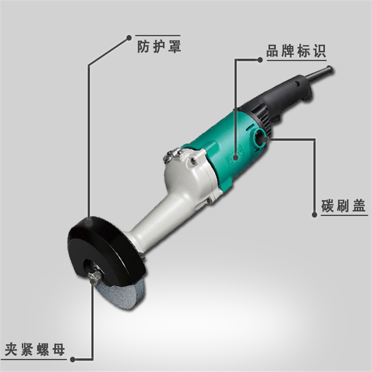 啟動(dòng),松開開關(guān),工具關(guān)閉逐漸停止。外置碳刷方便更換,砂輪罩在進(jìn)行打磨拋光時(shí)