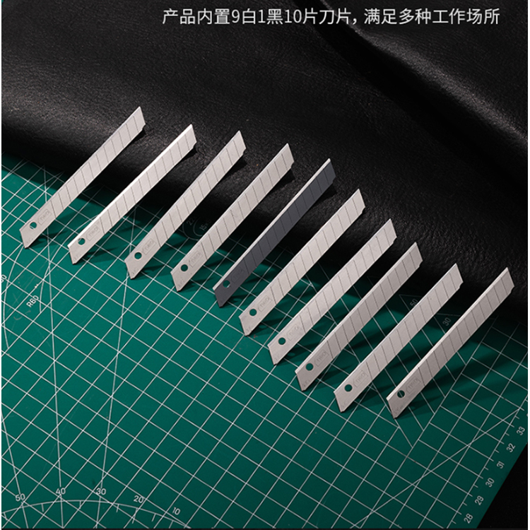 得力(deli) 13刀頭SK4合金鋼美工刀片黑刀片表面陽極氧化處理,防止生銹。