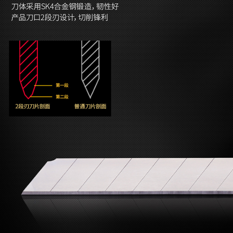 得力(deli) 13刀頭SK4合金鋼美工刀片合金鋼刀體,刀口2段刃設(shè)計(jì)。