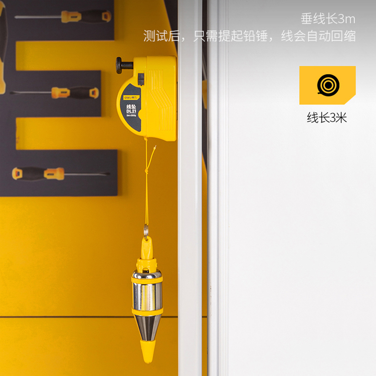 線墜測(cè)試后,只需提起鉛錘,線會(huì)自動(dòng)回縮